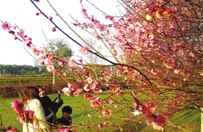 天氣轉(zhuǎn)暖,春回大地。連日來(lái),我市城區(qū)人民廣場(chǎng)梅花競(jìng)相綻放,紅的似霞,粉的如黛,姹紫嫣紅,交相輝映,分外嬌媚。不少市民紛紛前往觀賞拍照留念,分享迷人的春色,留下美麗的春天。