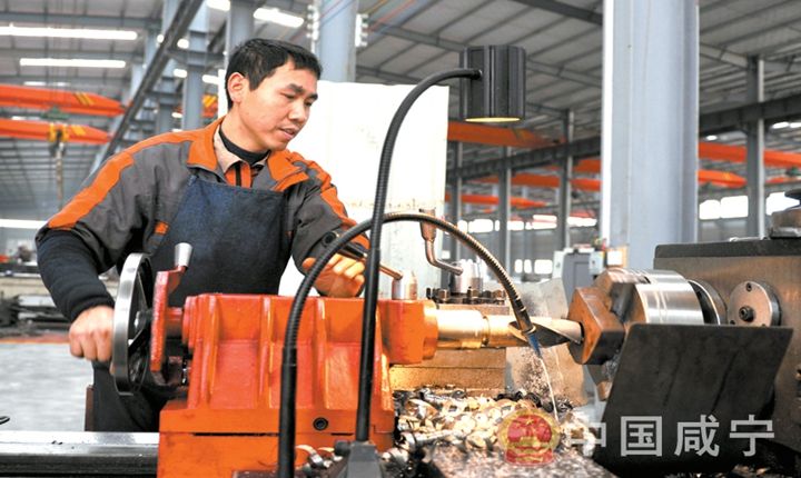 11日,通山縣經(jīng)濟開發(fā)區(qū)工業(yè)園,來自南林橋鎮(zhèn)的村民徐立光在星光玉龍機械(湖北)有限公司房內(nèi)進行車床外加工。