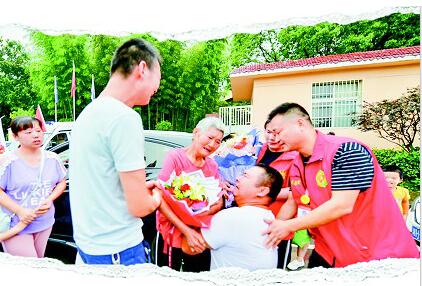 6月29日清晨7時許,一輛轎車駛出京港澳高速咸寧泉口收費站,緩緩停下。在義工的攙扶下,一位白發(fā)婆婆顫顫巍巍地下車。37歲的余軍雙腿跪下,抱著她痛哭起來:“媽,你上哪兒去了,怎么才回來……”在場的親人和義工們無不潸然淚下。
