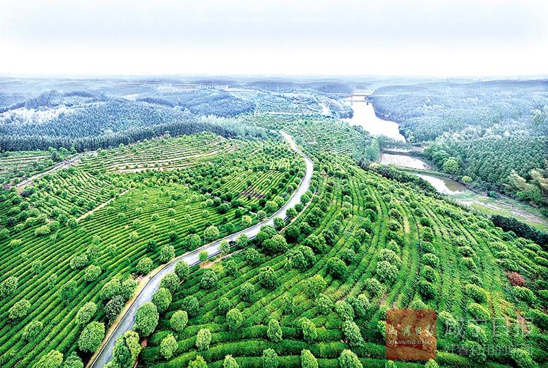 7月7日,星期天,咸安區(qū)汀泗橋鎮(zhèn)黃荊塘村,沿著一條黑紅相間的柏油路前進,滿目茶樹青翠欲滴,淡淡的茶香撲鼻而來,讓人瞬間心曠神怡。