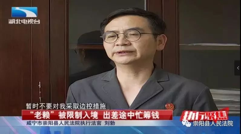 崇陽(yáng)縣法院執(zhí)行法官劉勃:“法院現(xiàn)在對(duì)失信被執(zhí)行人有個(gè)措施,就是限制出入境,我就跟他講,我說你回不來了?!?/p>