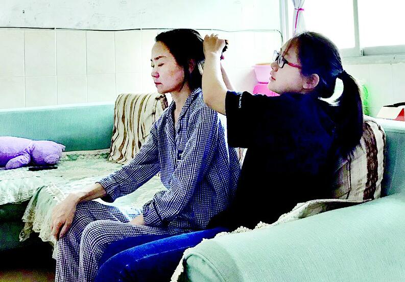 王渝玥原計劃跟同學開暑期培訓班,這樣可給媽媽掙點藥費,但沒想到媽媽病情惡化,她只好放棄開班的想法全身心陪護母親。從沒干過家務的她,拿起了拖把拖地,學會了簡單做飯,每天幫母親洗澡,扶著母親上下床、上衛(wèi)生間?!吧洗髮W的日子越來越近,我要好好陪媽媽,她已沒法陪我一起去北京了……”王渝玥說到這里淚如雨下。