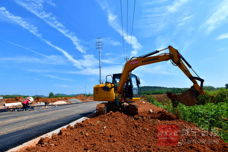 8月8日,赤壁市高新區(qū)中伙光谷縱五路,大型機械正在平整綠化帶,為植綠做準備。