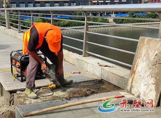 赤壁網(wǎng)消息(記者 聶愛(ài)陽(yáng))近日,在赤壁城區(qū)公交站臺(tái)、大眾餐館、家聯(lián)超市、老水利局、一橋……都能看到他們的身影——烈日下的一抹桔,用電鉆、角鋤、鐵鍬撬動(dòng)原有的地面,用泥漿、錘頭、抹泥刀,鋪設(shè)上全新的大理石。