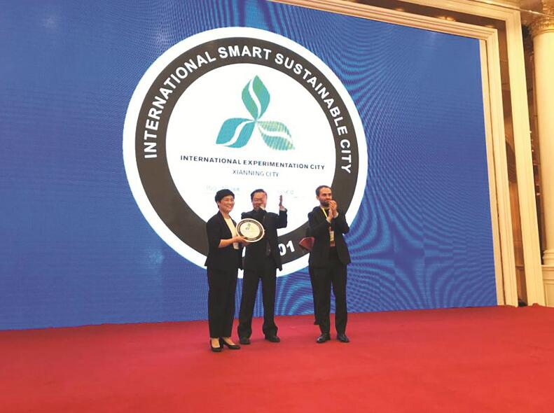 圖為:咸寧被授予“可持續(xù)發(fā)展國際標(biāo)準(zhǔn)試點城市”。