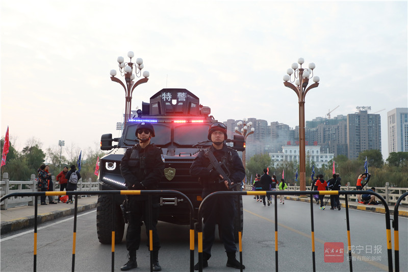 11月24日,2019咸寧國際溫泉馬拉松賽在市人民廣場鳴槍開跑,16000余名跑客激情競逐。咸寧公安投入2885名警力,出動各類警用裝備200余臺,全力做好各項賽事安保。