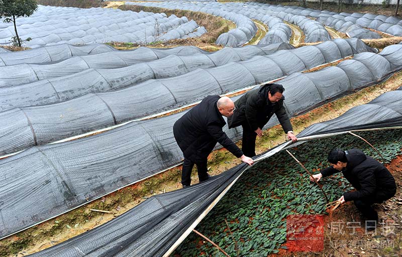 昨日,通城縣雋水鎮(zhèn)利和村興農(nóng)茶藥果苗良種場(chǎng),農(nóng)技專家正在查看新育茶苗生長(zhǎng)情況。據(jù)了解,為做優(yōu)茶產(chǎn)業(yè),該縣去冬今春新育中茶108、櫧葉齊等名茶苗30余畝600余萬(wàn)株,預(yù)計(jì)今年可新增茶園2000余畝。
