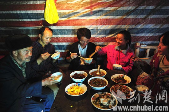 楊杰給羅歡夾菜。