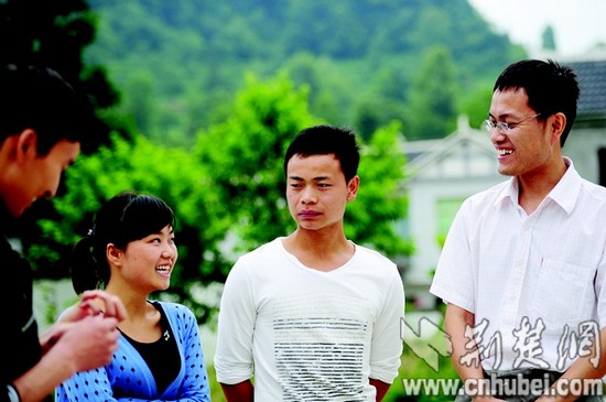 徐本禹與曾教過的學(xué)生王志華、王敏和高家毅在一起。