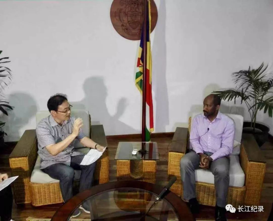 攝制組采訪塞舌爾副總統(tǒng)文森特·梅里頓