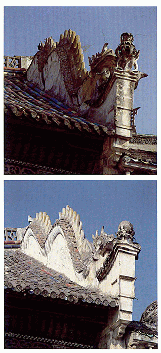 磚 雕 萬(wàn)壽塔座落在荊州市荊江大堤內(nèi)側(cè)古觀音磯上,是16世紀(jì)中葉,明藩第七代遼王朱憲節(jié)遵嫡母毛太妃之命為嘉靖帝祈壽而建。塔身內(nèi)外除玉雕佛龕坐佛外,還有兩千多塊磚雕。藝人以浮雕和線刻手法塑造了神態(tài)各異的佛像、動(dòng)物、花鳥圖案。磚雕兩側(cè),還以漢、滿、蒙、藏、回五種文字刻有捐資者姓名、捐資數(shù)目。